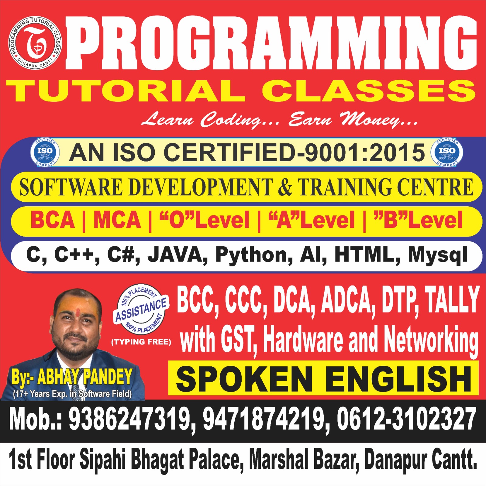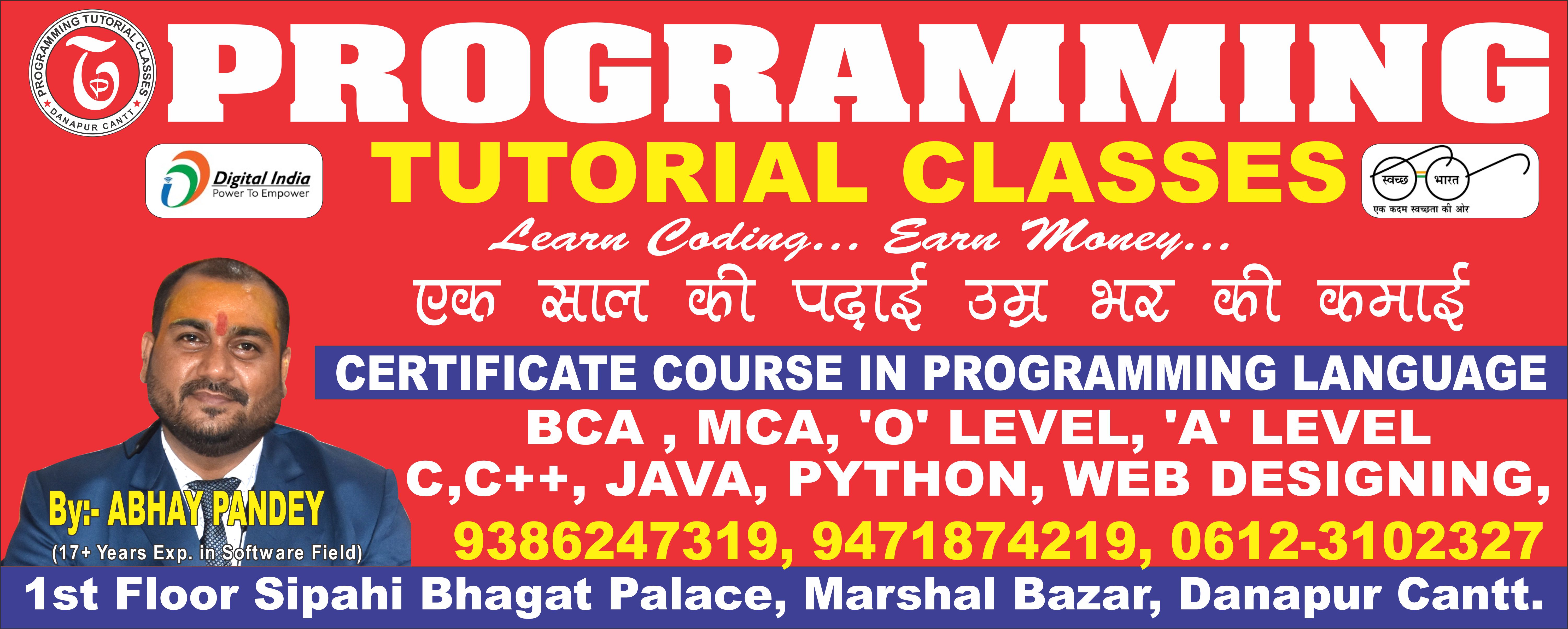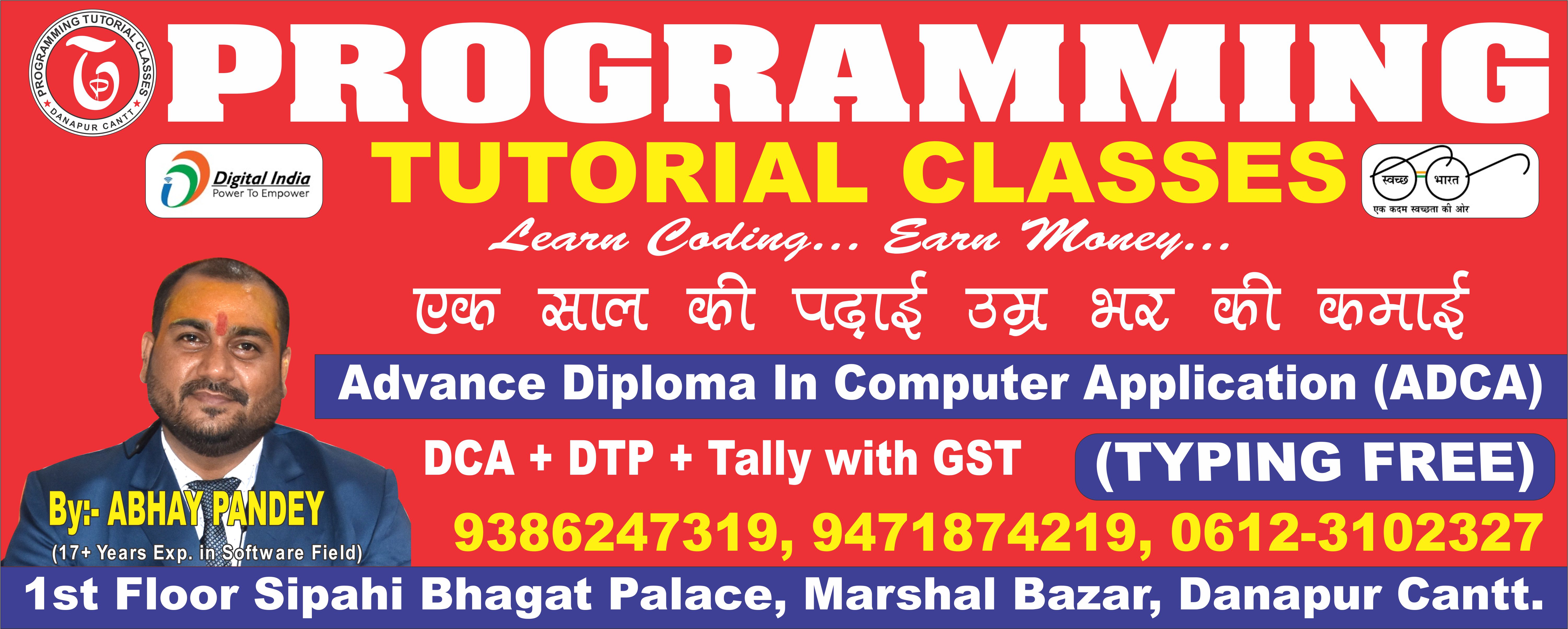 Programming Tutorial Classes was established in 2009. We at Programming Tutorial Classes , situated at Danapur Cantt, Patna, Bihar are a leading institute offering a wide range of computer courses for DCA, ADCA, Tally, Basic Computer Training , BCA, MCA, B-tech,'O' & 'A' Level and all. Our mission is quality training with an affordable fee structure. Our uniquely designed curriculum makes our students employable and future ready. We have a dedicated team of skilled teachers and counsellor.